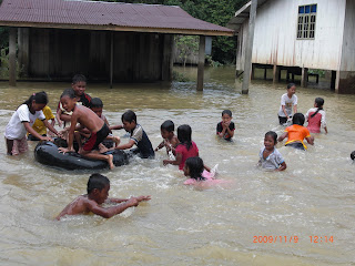 Laluan ke Sek. Keb. Gual Sitok melalui Tasik Cina yang masih ditenggelami air.